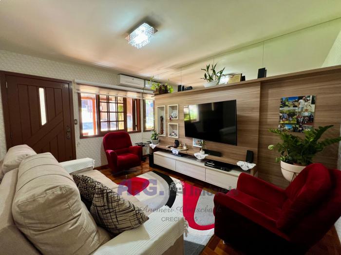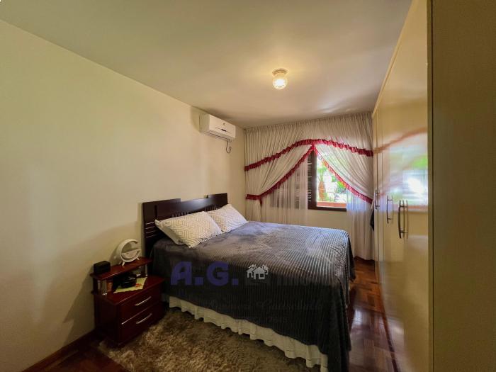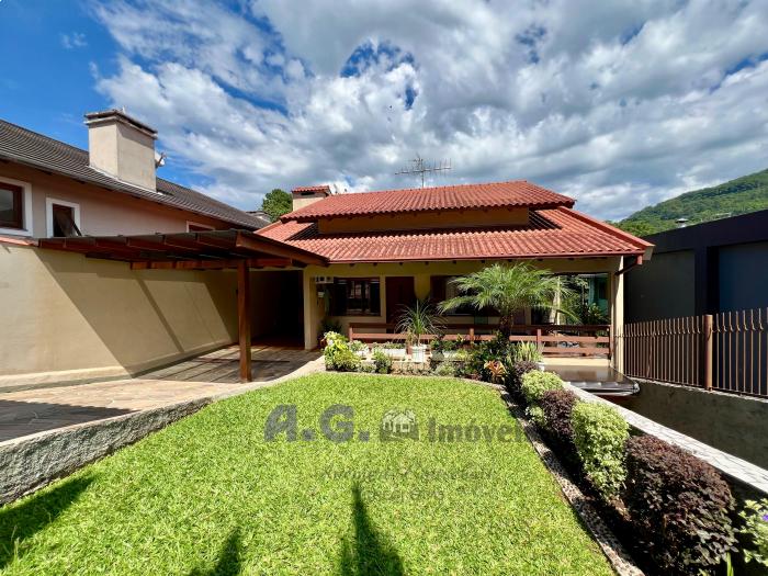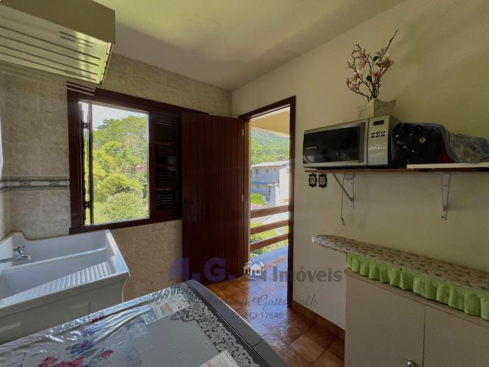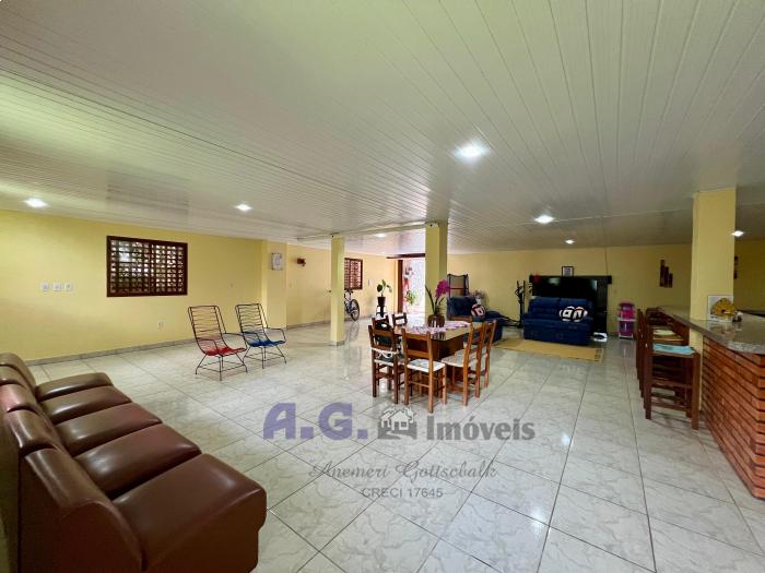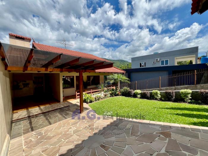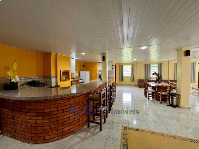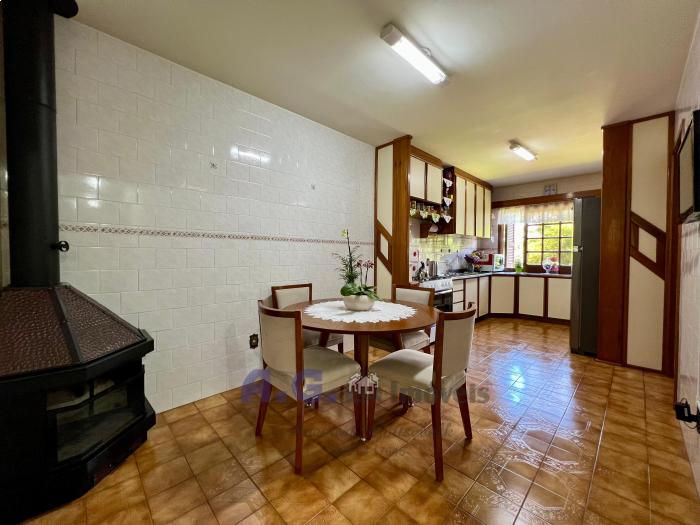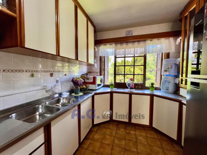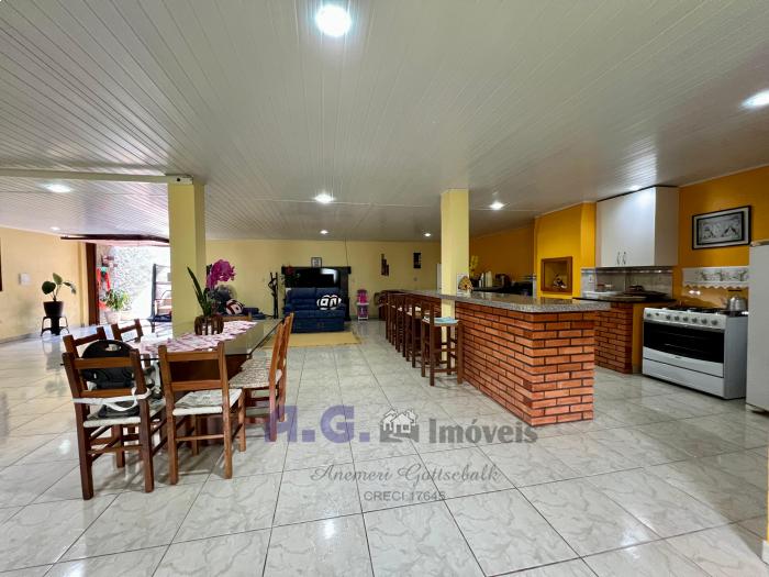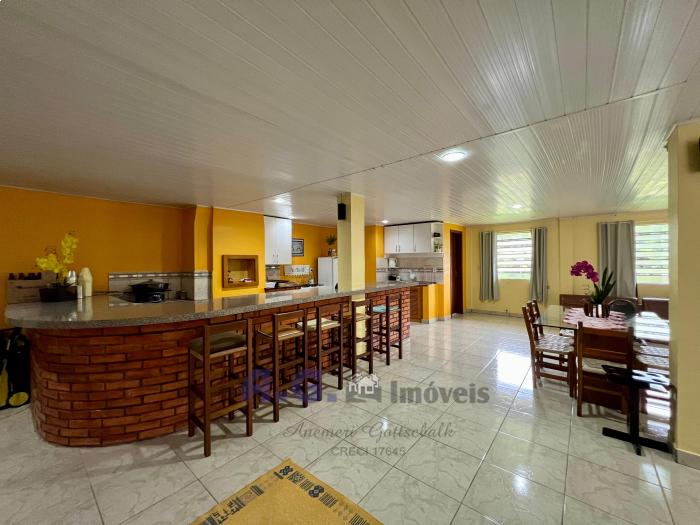 Três dormitórios, dois banheiros, cozinha com lareira e sala de janta integrados, uma ampla área de serviço, pátio com um jardim lindo na frente e nos fundos um pomar, garagem com espaço para dois carros e churrasqueira integrada. Um amplo salão de festas, todo mobiliado e com eletrodomésticos, churrasqueira e banheiro, trazendo mais uma opção para moradia. A casa oferece uma sacada com uma linda e aconchegante vista para o pomar.