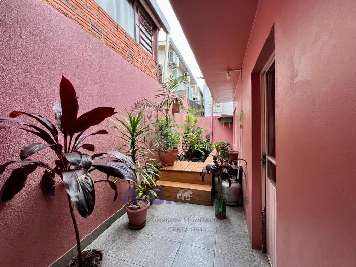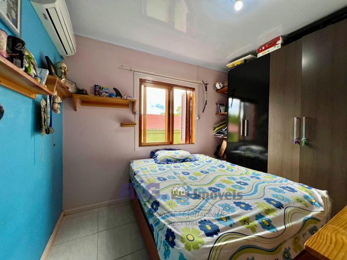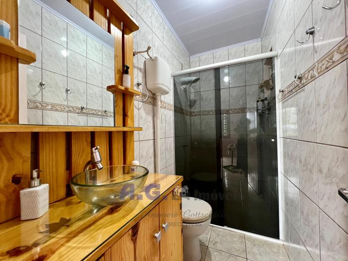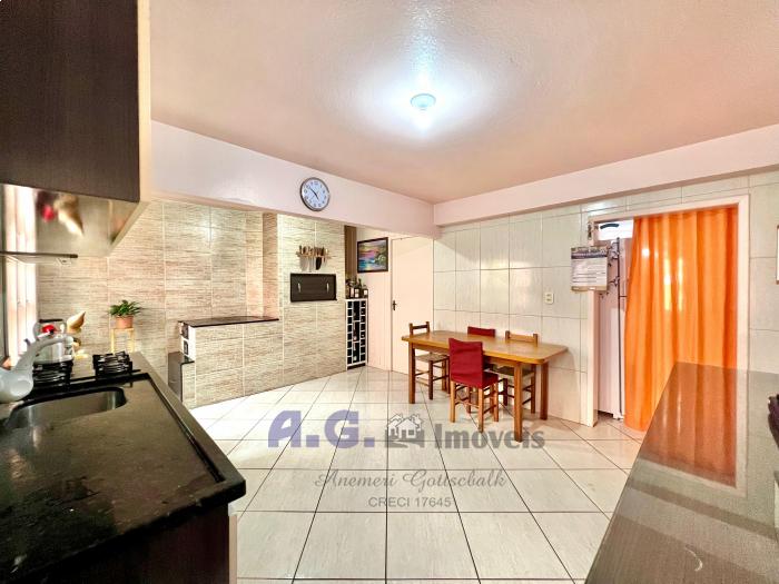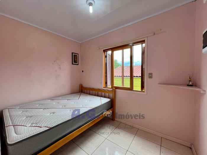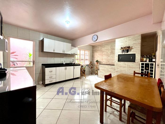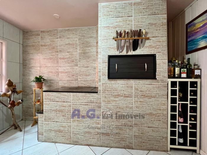 Três dormitórios, um banheiro, cozinha com fogão campeiro e churrasqueira, área de serviço, área de utensílios, garagem coberta, placa solar, o imóvel é cercado e murado.