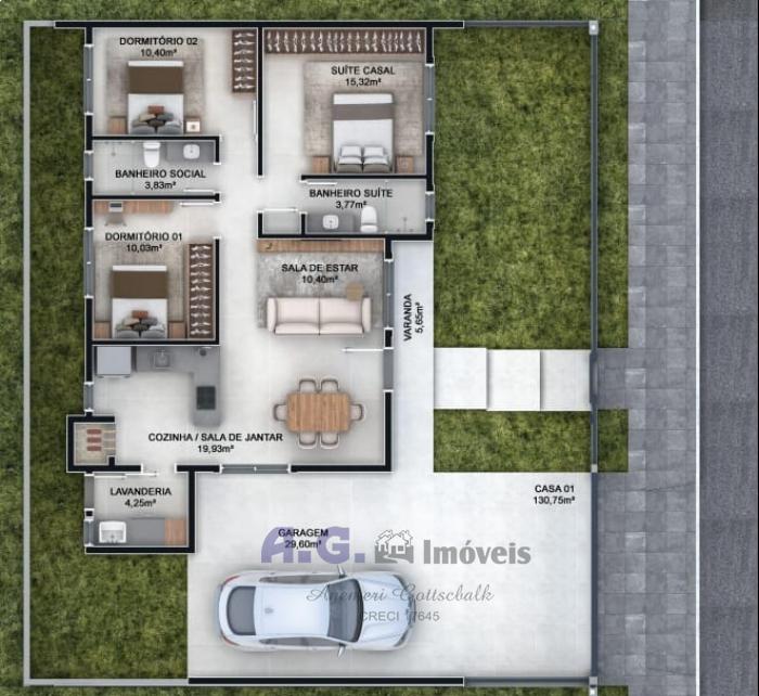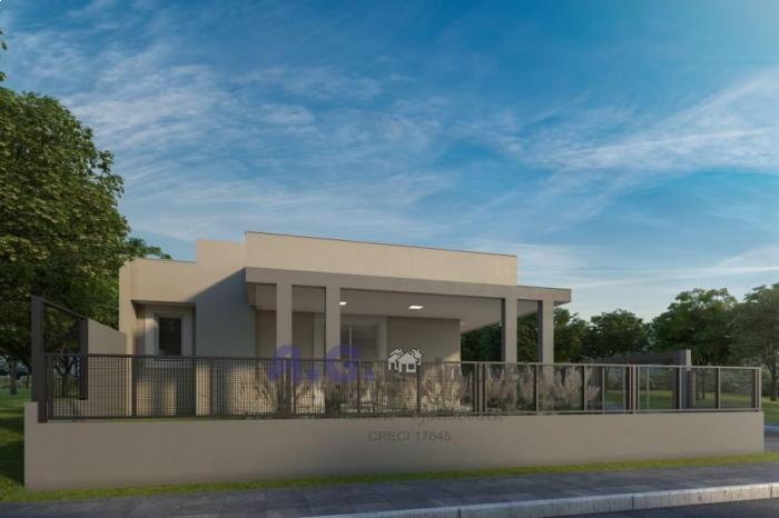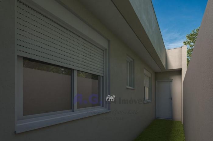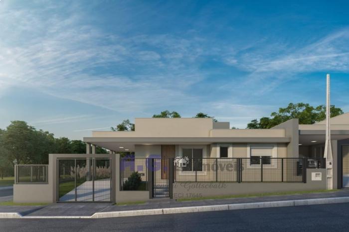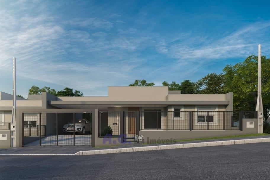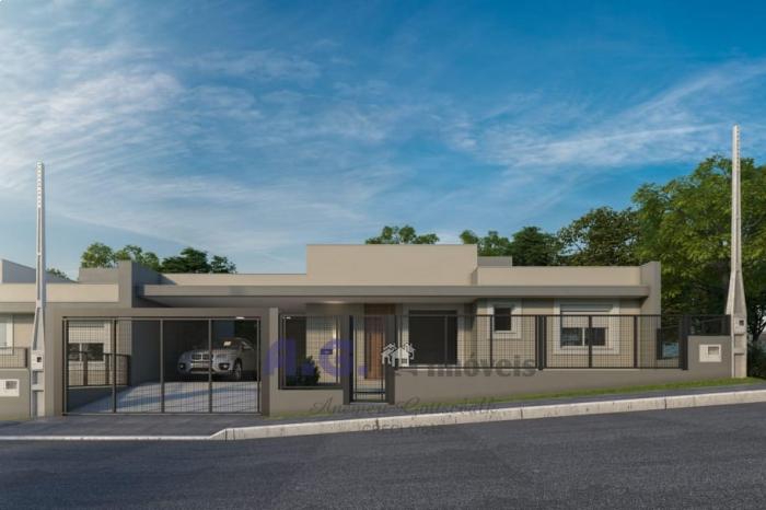 Casas planas para venda no bairro industrial na cidade de Dois Irmãos, local tranquilo e seguro, a poucos minutos do centro. Casa com 3 dormitórios, sendo 1 suíte, sala de estar, sala de jantar e cozinha com churrasqueira em living integrado, banheiro social, área de serviço com varanda, garagem para dois carros cobertos, jardim com paisagismo, esquadrias em PVC branco, persianas automatizadas, porta da entrada e porta dos fundos em alumínio branco, portas internas brancas, rebaixo do teto em gesso, piso porcelanato, espera para ar condicionado, espera fotovoltaica e pedras nas calçadas.