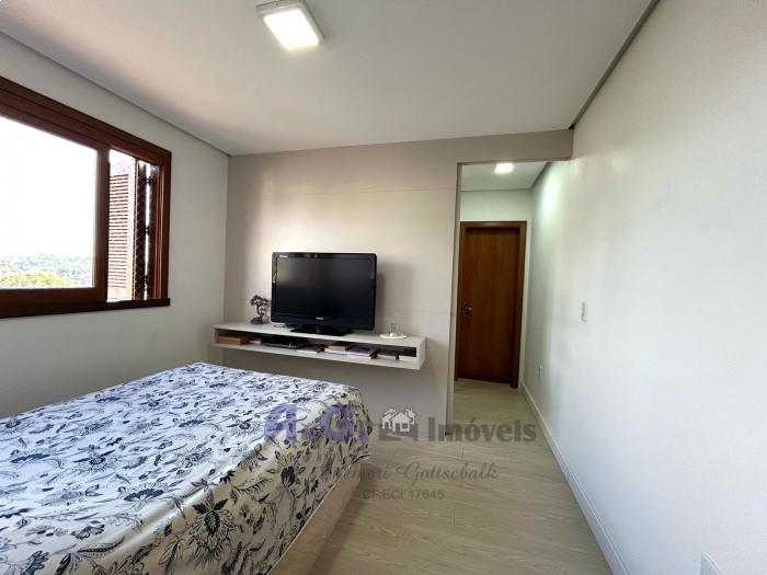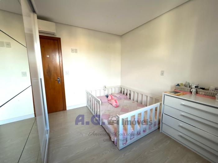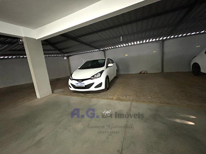 Dois dormitórios (um deles suíte com closet), cozinha com churrasqueira, sala de estar, sala de jantar, área de serviços, banheiro social, duas vagas de garagem lado a lado.