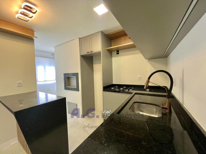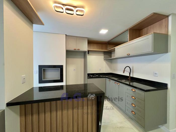 O apartamento conta com: Duas suítes, lavabo, living integrado, área de serviço, uma vaga de garagem.