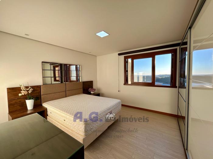 A posição solar norte-oeste, ambientes iluminados e uma vista espetacular para os arredores e morros da cidade de Morro Reuter.