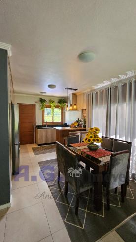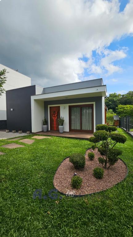 A casa conta com 1 dormitório, sala aconchegante, cozinha funcional, 2 banheiros e 2 vagas de garagem. Possui duas entradas laterais, trazendo mais praticidade e excelente circulação. O terreno é arborizado e conta com um jardim maravilhoso, perfeito para quem valoriza contato com a natureza, tranquilidade e qualidade de vida.