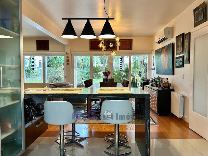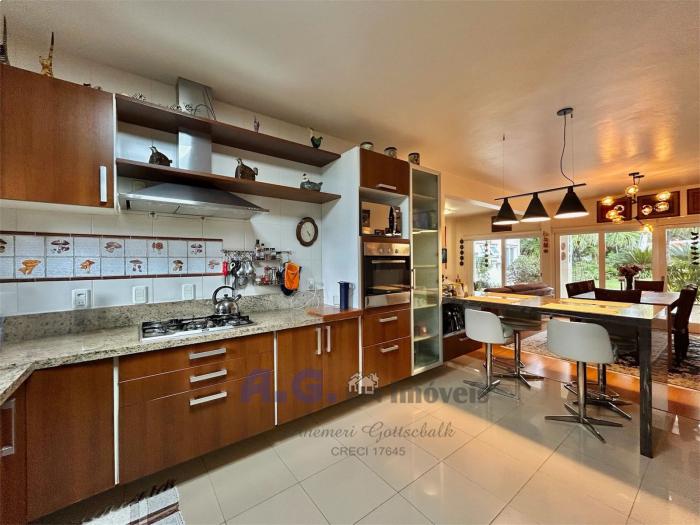 São 5 dormitórios, sendo 1 suíte com banheira de hidromassagem, além de 3 banheiros e lavabo, cozinha ampla integrada com a sala de estar com lareira e sala de jantar, além de um espaço aconchegante para um churrasco com a família e amigos, garantindo conforto e praticidade para todos.