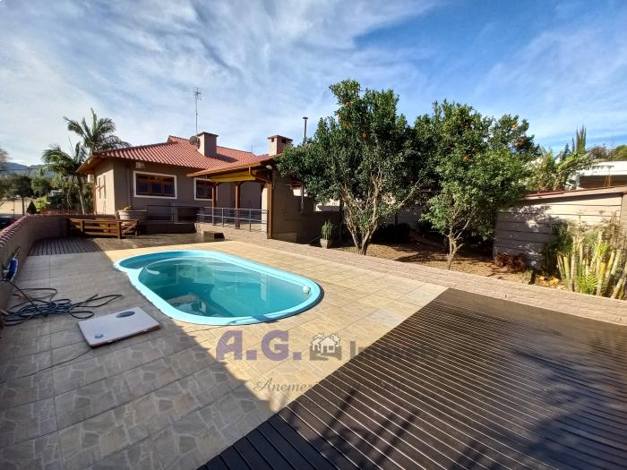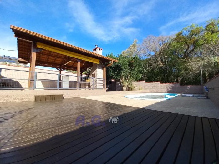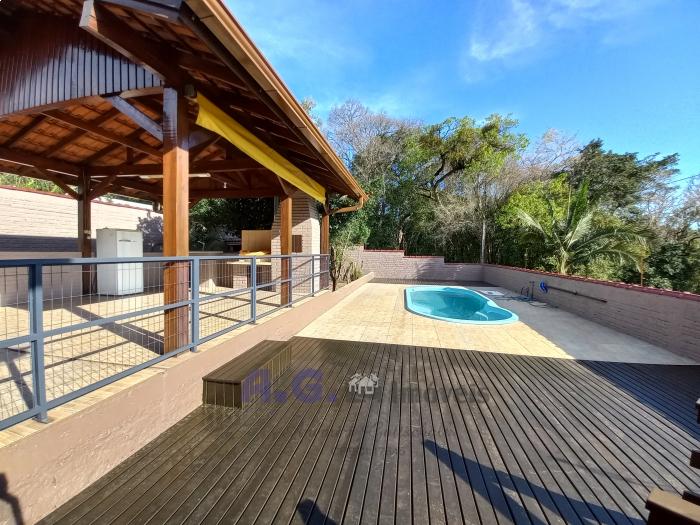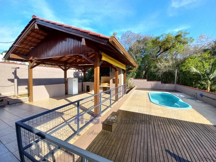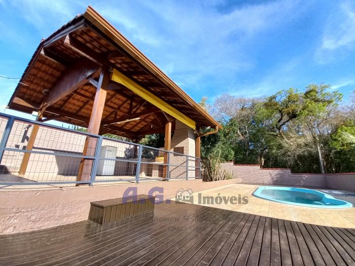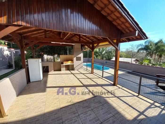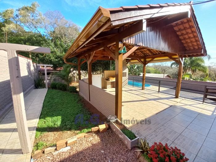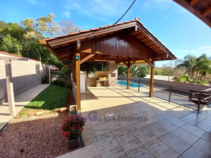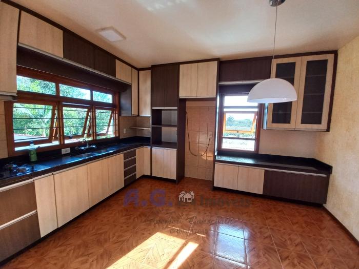 Sala de jantar integrada com a cozinha, sala de estar, garagem para 02 carros, Quiosque com fogão campeiro e uma piscina com uma bela vista para a cidade.