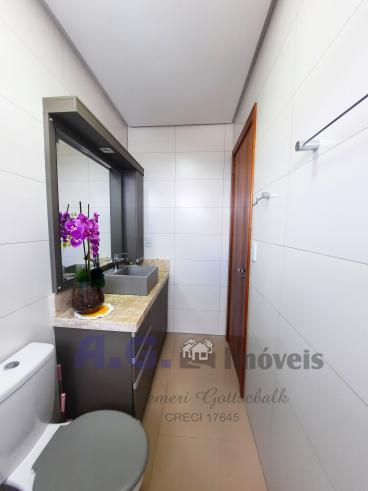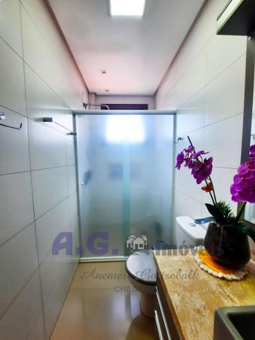 O imóvel ainda possui, móveis planejados na cozinha, banheiros, piso vinílico nas áreas comuns, dormitórios e água quente.