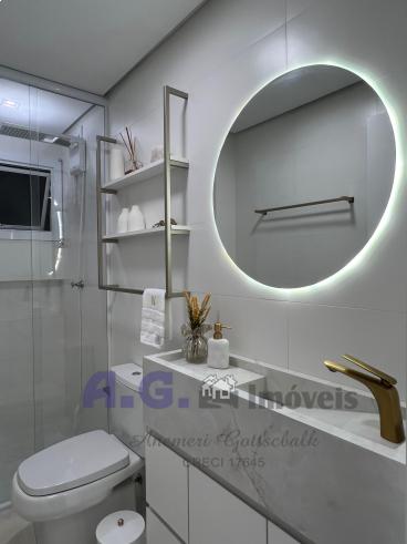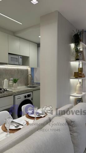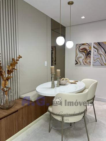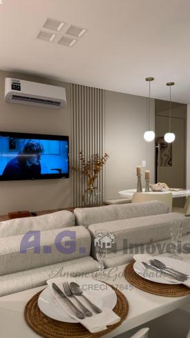 O Apartamento conta com 57,00 m² de área privativa, sendo no segundo andar, sala de estar e jantar integrados, cozinha totalmente mobiliada com eletrodomésticos, dois quartos, banheiro social, uma vaga de garagem descoberta.