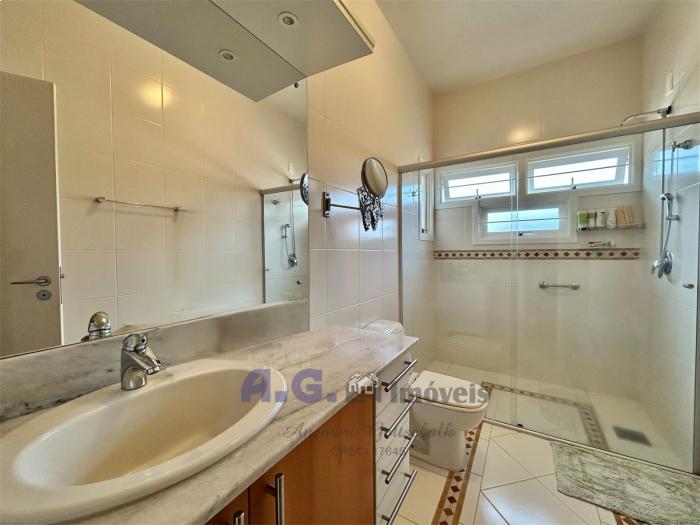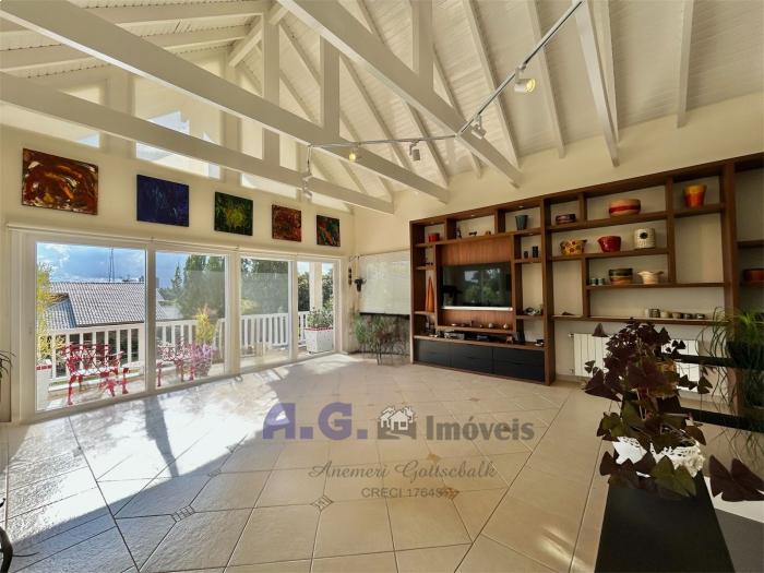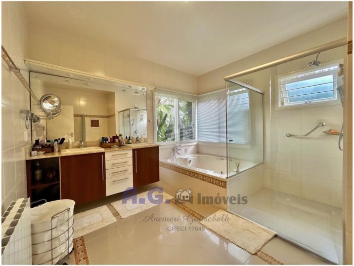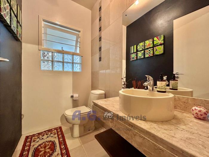 São 5 dormitórios, sendo 1 suíte com banheira de hidromassagem, além de 3 banheiros e lavabo, cozinha ampla integrada com a sala de estar com lareira e sala de jantar, além de um espaço aconchegante para um churrasco com a família e amigos, garantindo conforto e praticidade para todos.